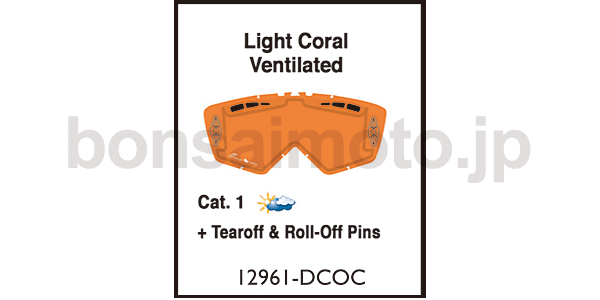 | 製品名: | ダブル ライトコーラル レンズ(ベンチレーション有、ピン無)【8Kシリーズ除く】 カテゴリー1【低強度の太陽光向け】 |