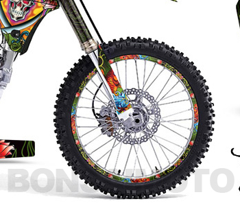 車両全体のデザインに統一感が出るリム用デカールです。リムのアクセントとプロテクションになるデカールです。