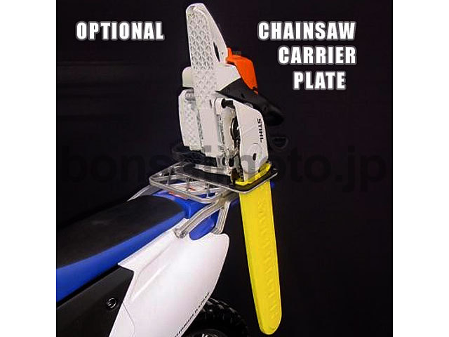 カーゴラックに取り付けるチェーンソーキャリアです。チェーンソーを楽に運搬出来るので、林業従事者やオフロードコースの開拓にお勧めです。